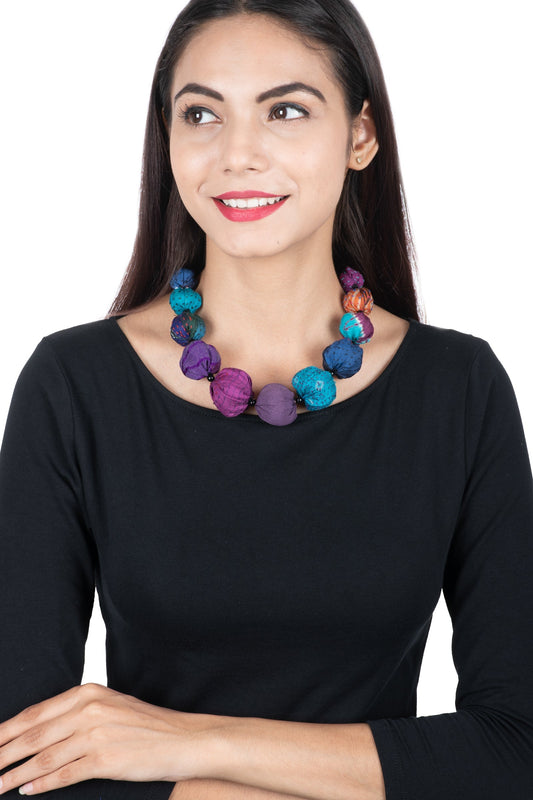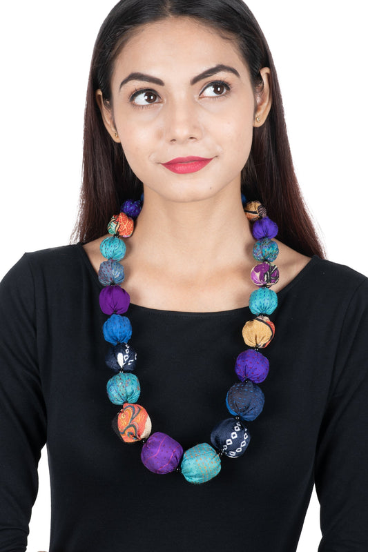 OOAK VINTAGE SILK KANTHA NUTS MEDIUM NECKLACE - ok2701-blu -