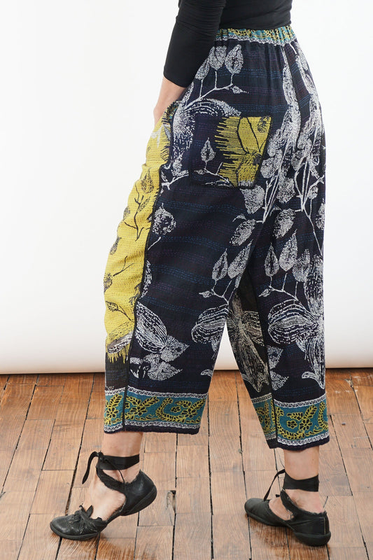 ORGANIC LEAVES KANTHA BAGGY PANTS - ol2642-blk -