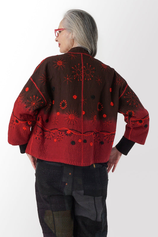 OMBRE SUN RALLI FIREWORKS KANTHA STAND COLLAR CROPPED JACKET - of4034-red -