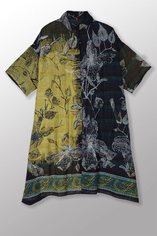ORGANIC LEAVES KANTHA HALF SLV. SHIRT DRESS - ol2429-blk -
