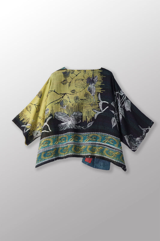 ORGANIC LEAVES KANTHA BLOCK TOP - ol2559-blk -