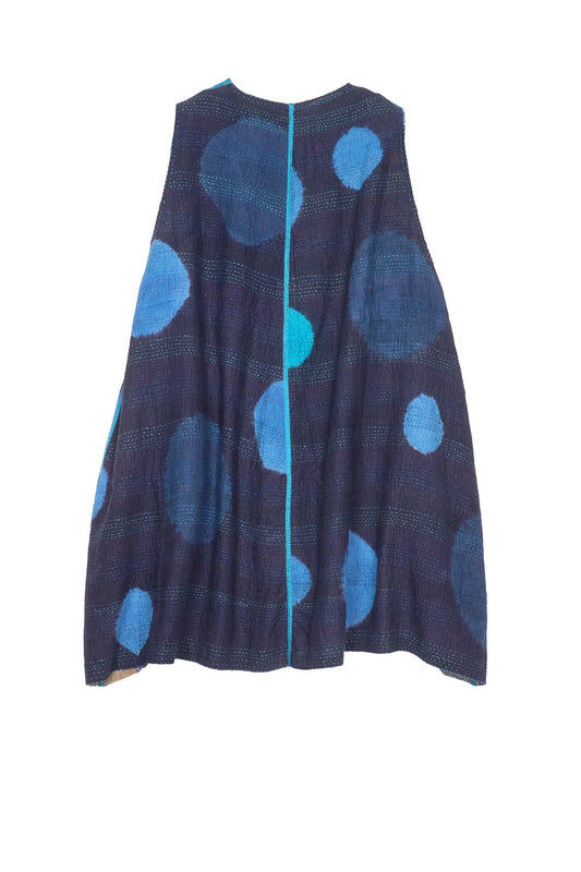 PATCH & CIRCLE PRINT KANTHA BELL SHAPE LONG VEST - pc2225-blu -