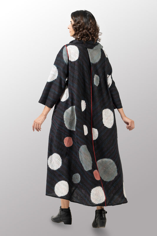 PATCH & CIRCLE PRINT KANTHA AND KNIT LONG JKT - pc2028-blk -