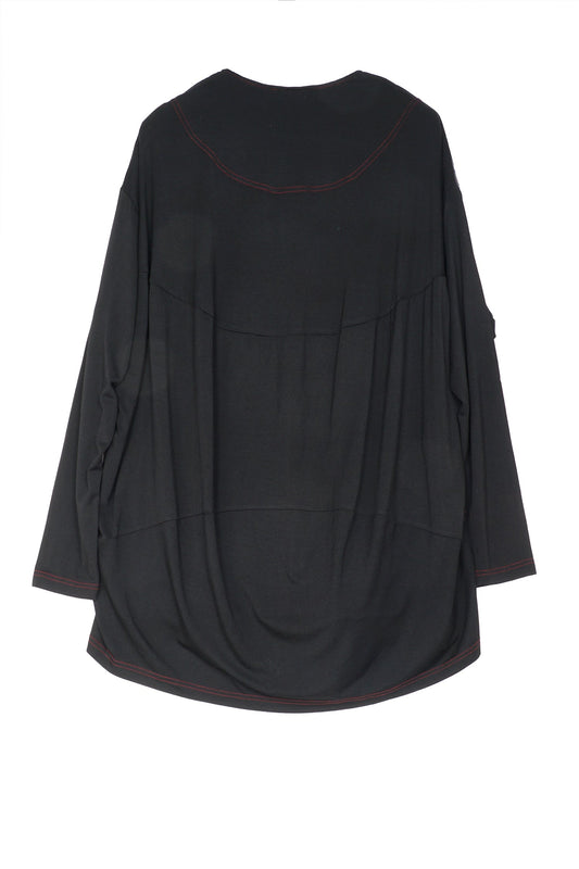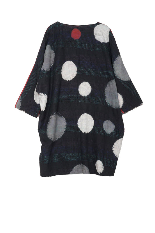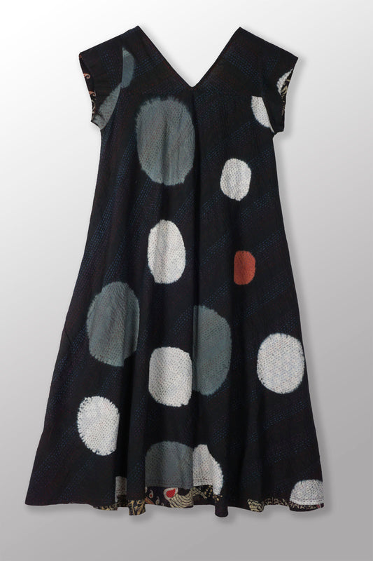 PATCH & CIRCLE PRINT KANTHA DOLMAN SLV. DRESS - pc2410-blk -