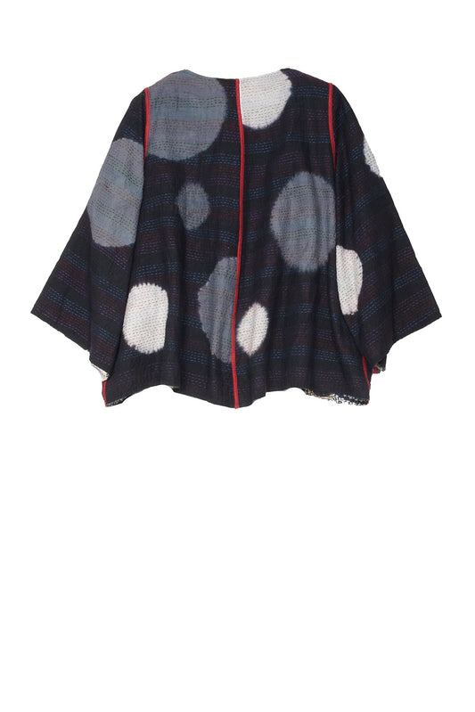 PATCH & CIRCLE PRINT KANTHA DOLMAN SHORT JKT - pc2015-blk -