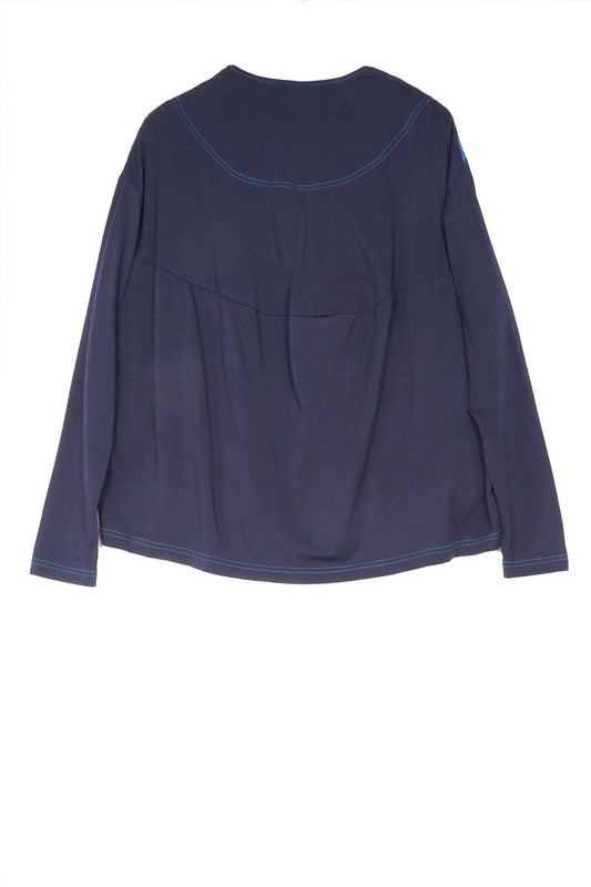 PATCH & CIRCLE PRINT KANTHA AND KNIT LONG JKT - pc2028-blu -