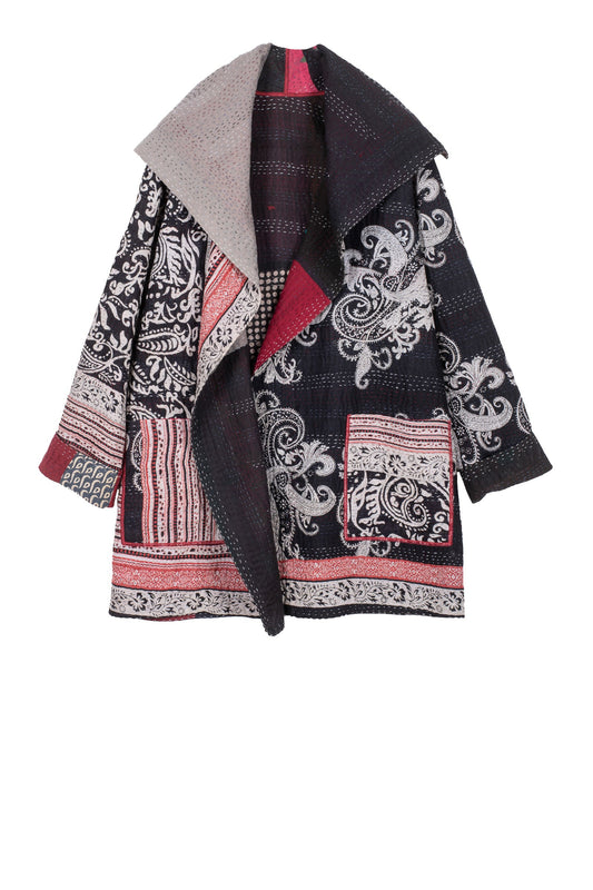 PAISLEY & PATCH KANTHA POCKET MEDIUM COAT - py4316-blk -