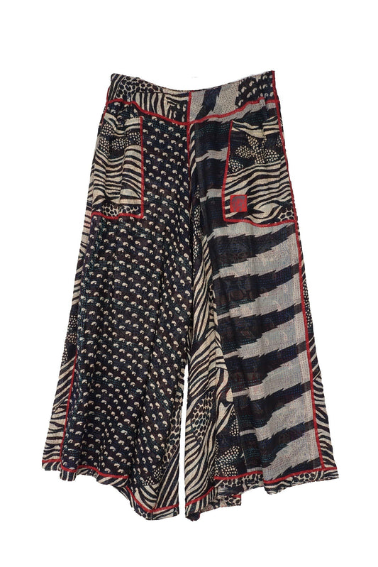 PATCHED PRINT KANTHA WIDE LEG PANTS - pp2623-blk -
