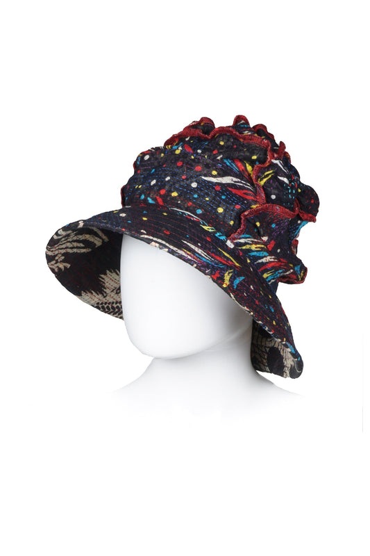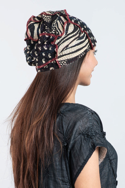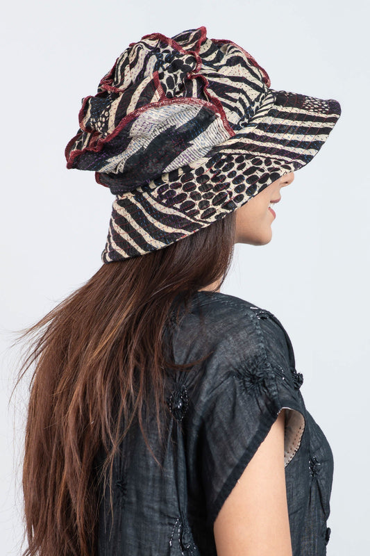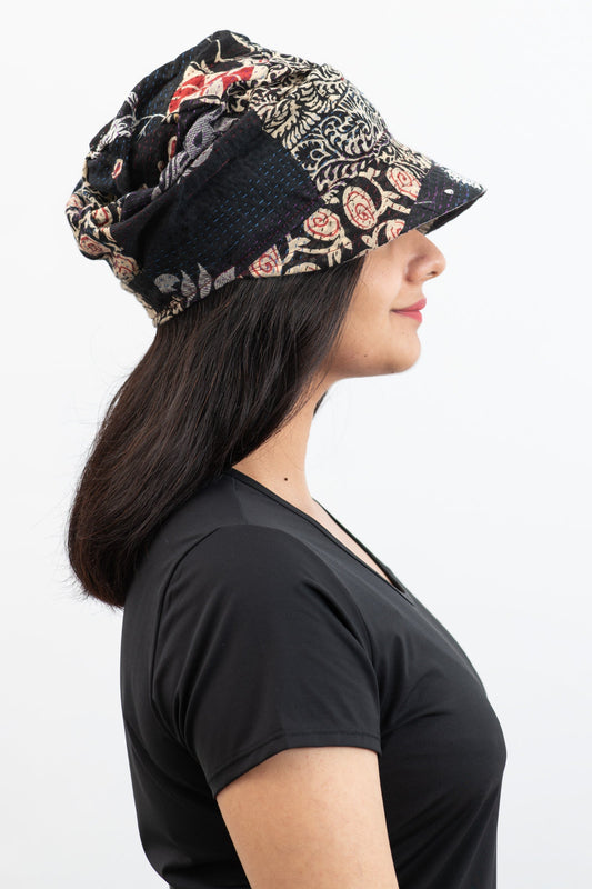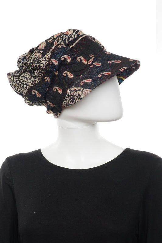 PATCHED PRINT KANTHA PATCHWORK HAT - pp2880-blk -