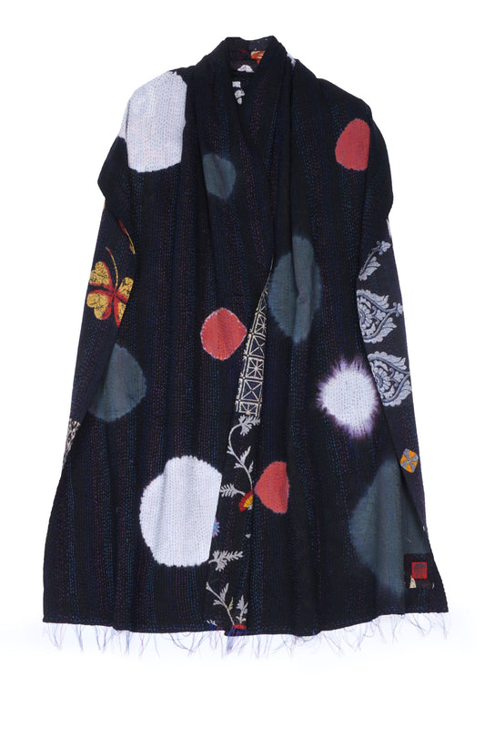 PATCH & CIRCLE PRINT KANTHA SHAWL LARGE - pc2803-blk -