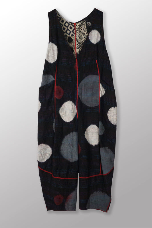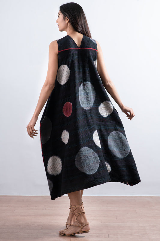 PATCH & CIRCLE PRINT KANTHA TENT DRESS - pc2413-blk -