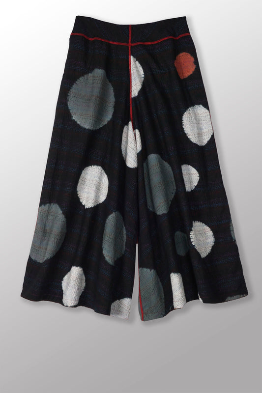 PATCH & CIRCLE PRINT KANTHA WIDE LEG PANTS - pc2623-blk -