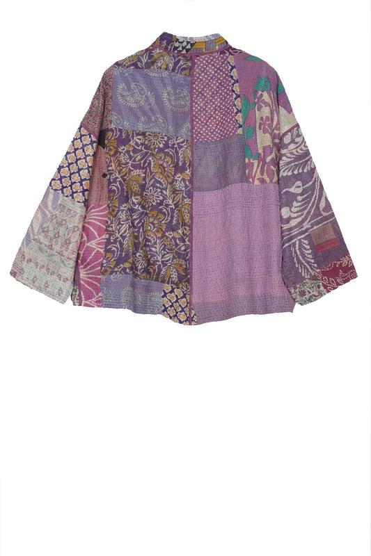 PATCHED PRINT KANTHA STAND COLLAR CROPPED JKT - pp2034-prp -