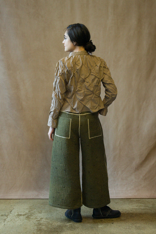 POLKA DOTS & LEAVES KANTHA CIRCULAR VEST - dl4201-pik -