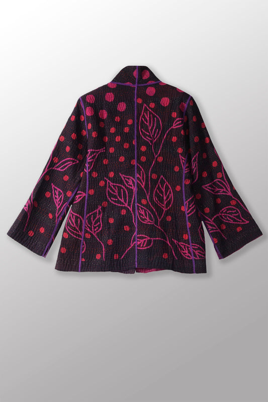 POLKA DOTS & LEAVES KANTHA SHORT JACKET - dl4007-fus -