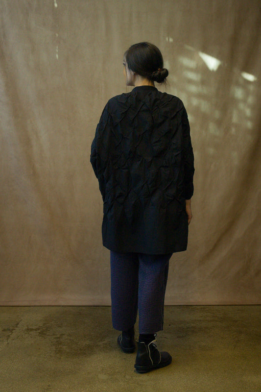 POLISHED COTTON WAVY TUCK OVERSIZED SHIRT - bl-wl1555-blk -