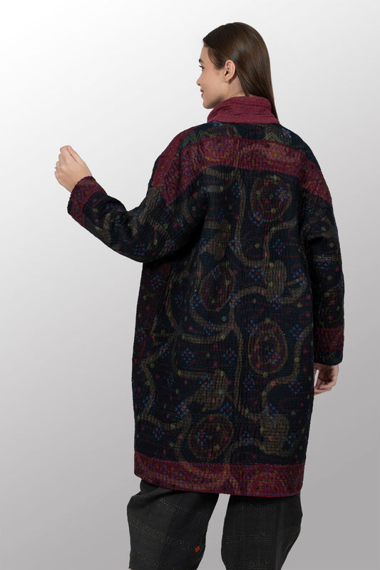 QUILTED OVERDYE COTTON KANTHA OVERSIZED MEDIUM COAT - oq5331-cred002a -