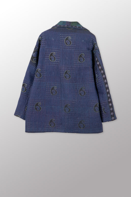 QUILTED OVERDYE COTTON KANTHA LAPELED MEDIUM JKT - oq5080-cblu001m -