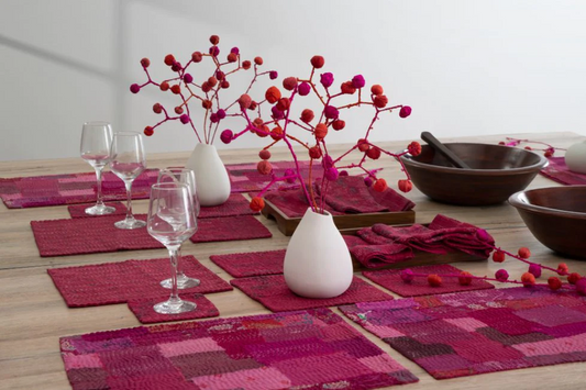 Silk & Cotton Kantha Twig & Branch Set -Pink -
