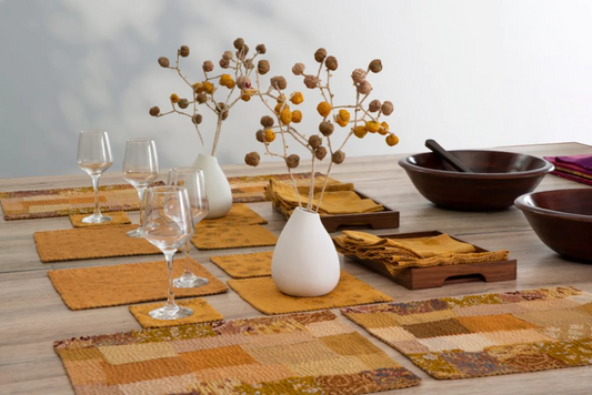 Silk & Cotton Kantha Twig & Branch Set -Yellow -