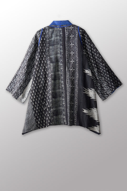 SILK COTTON OMBRE PRINT KANTHA A-LINE JKT - os2003-blk -
