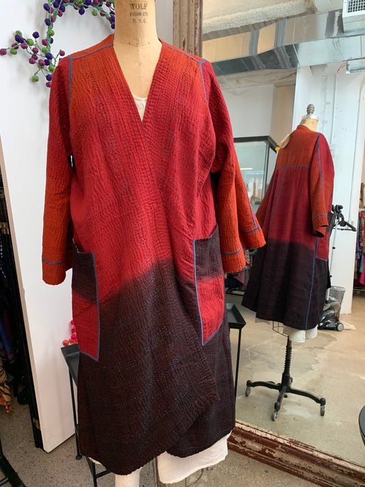 STRIPE AND BENDS KANTHA WRAP FLARE COAT - sb4330-red -