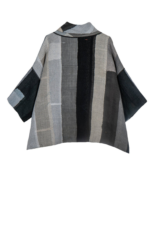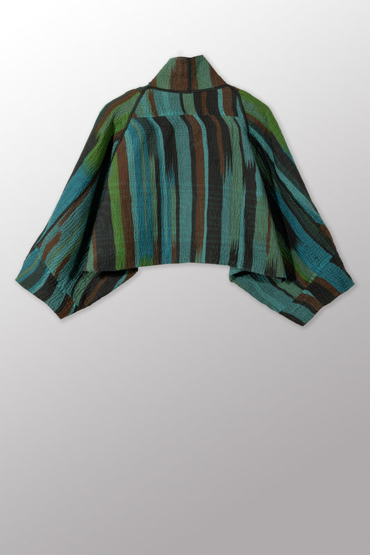 STRIPE AND BENDS KANTHA WING COLLAR JACKET - sb4013-grn -