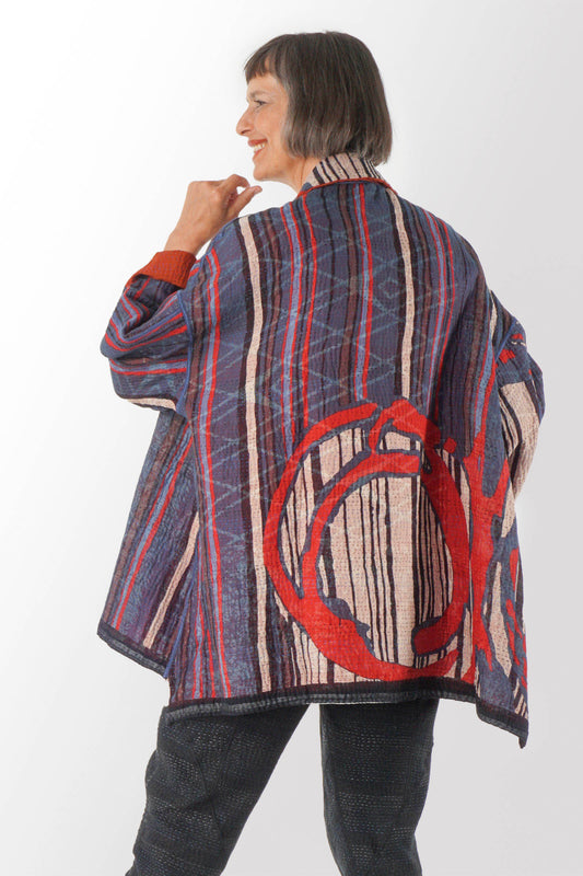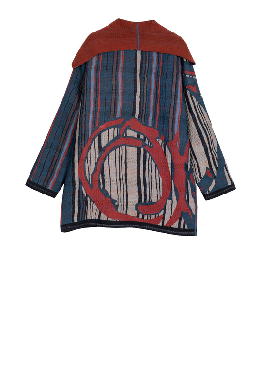 STRIPE AND BENDS KANTHA NEW OVERSIZED COAT - sb4342-red -