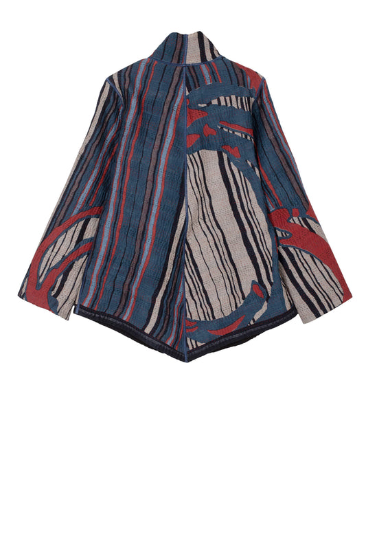 STRIPE AND BENDS KANTHA WING COLLAR JACKET - sb4013-red -
