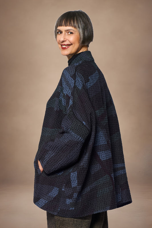 CIRCLE TIE DYE BOILED WOOL NEW SHAWL COAT - tw1361-nvy -