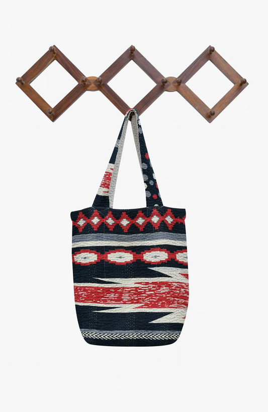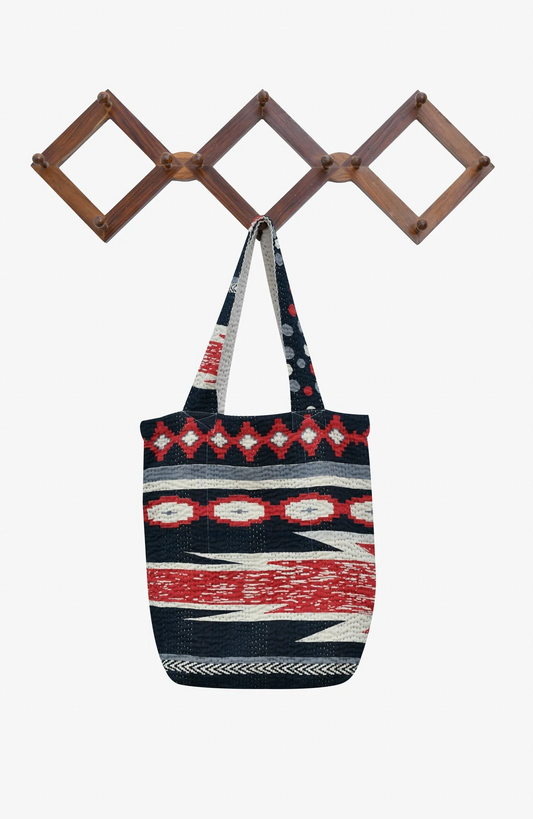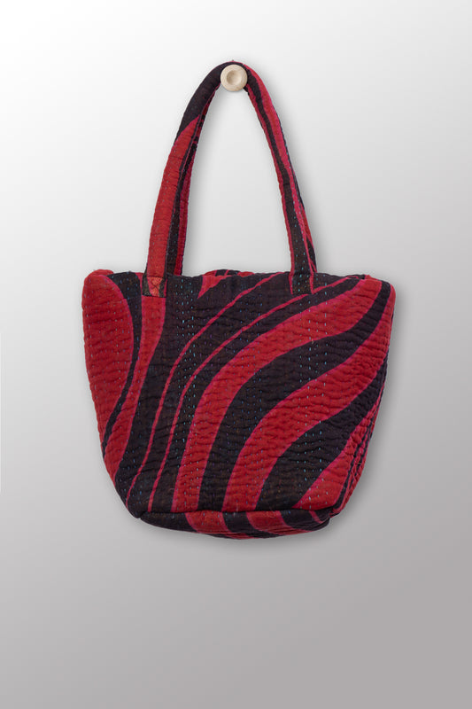 Monotone Ikat Handmade Vintage Kantha Tote Bag -Red -