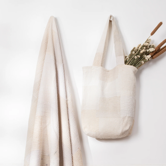 Mosaic Fray Handmade Vintage Kantha Tote Bag -Shallot -