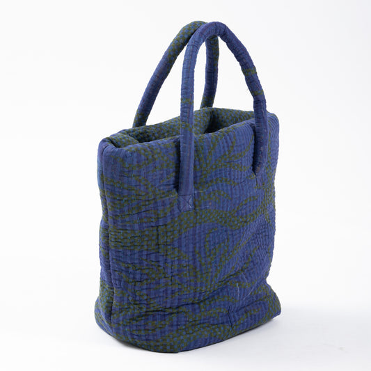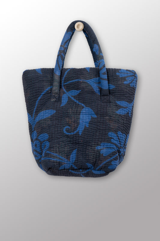 Quilted Over Dye Cotton Kantha Bucket Tote - mm-oq5867-cblu006a -