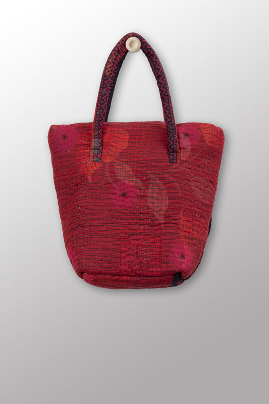 Quilted Overdye Cotton Kantha Bucket Tote - mm-oq5867-cred009a -