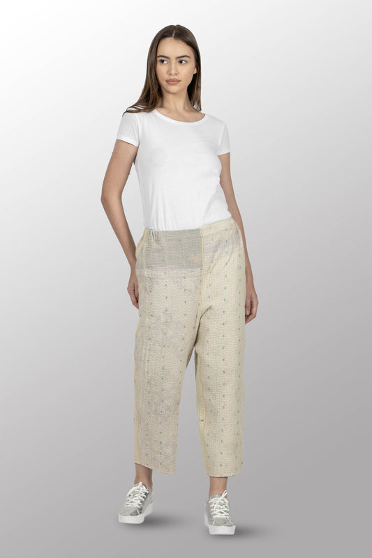 JAIPUR WHITE KANTHA BAGGY PANTS - jw2642-ivy -