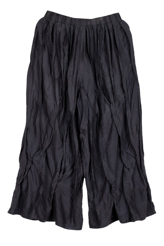 DYED COTTON SILK HEAVY VOILE WAVY TUCKED PANTS - dh1635-blk -