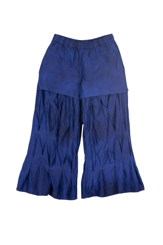 DYED COTTON SILK HEAVY VOILE WAVY TUCKED PANTS - dh1635-blu -