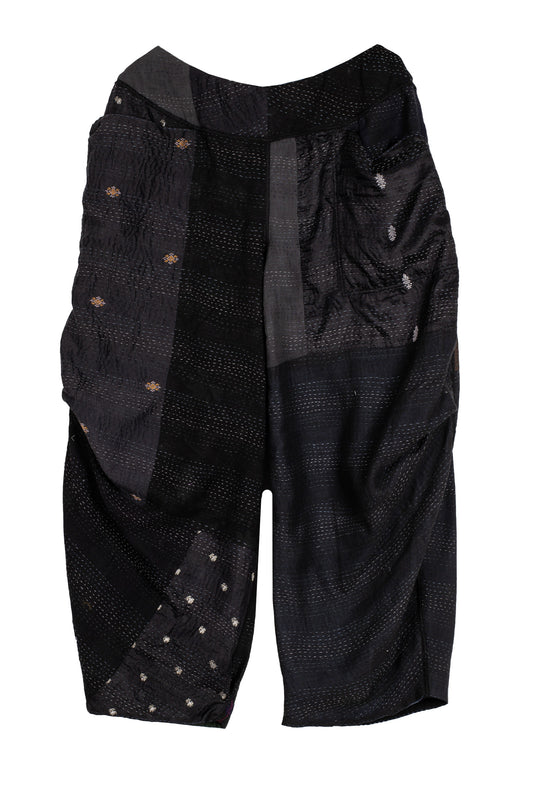 JAIPUR PATCH KANTHA KNEE TUCKED PANTS - jp2625-blk -