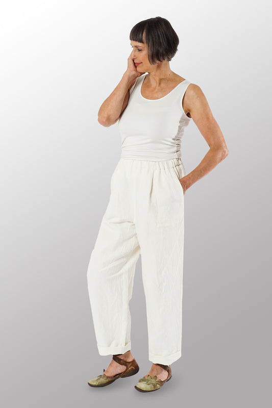 DYED COTTON SILK HEAVY VOILE WAVY TUCKED PANTS - dh1635-wht -