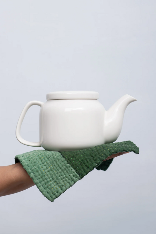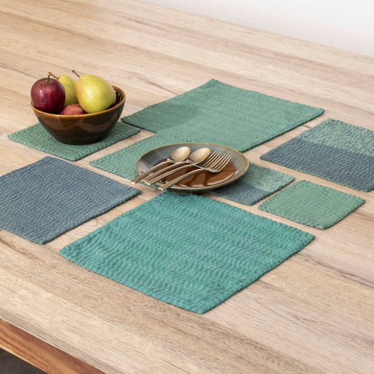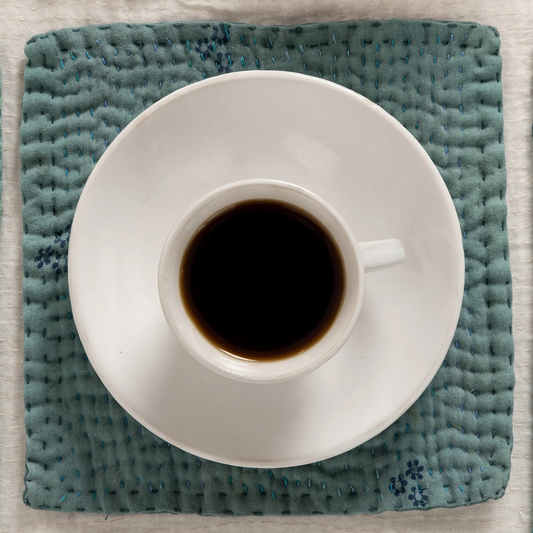 Printed Fray Vintage Cotton Kantha Coaster -Sage -