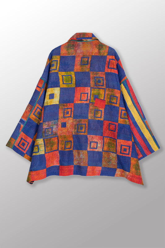 VINTAGE SILK KANTHA A-LINE COAT P - sv2336-0025a -