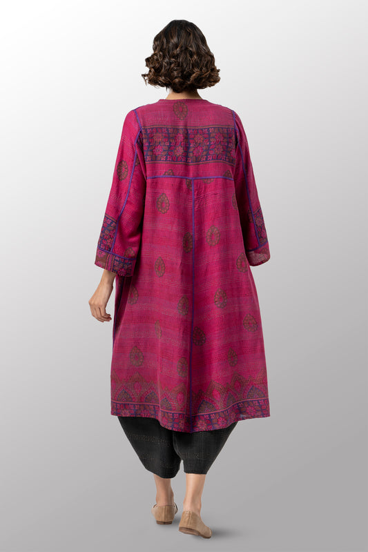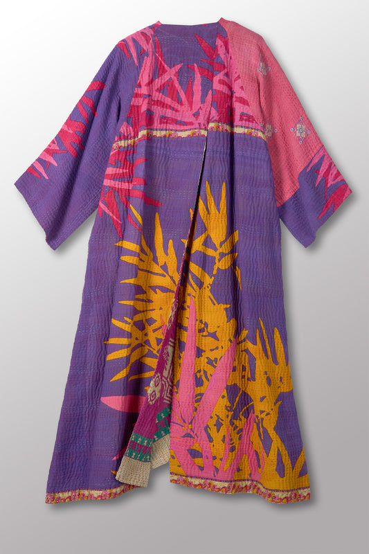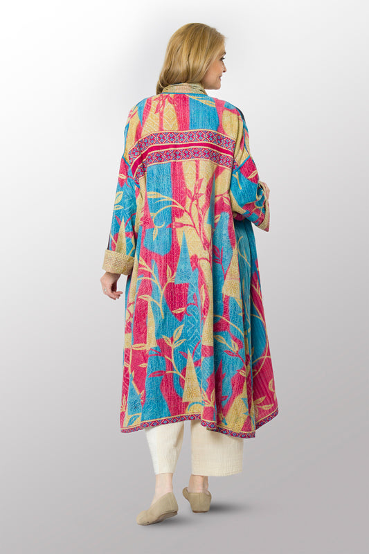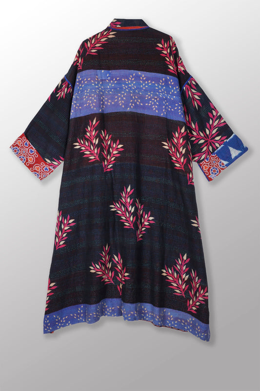 VINTAGE SILK KANTHA LONG DUSTER - sv2328-0012a -