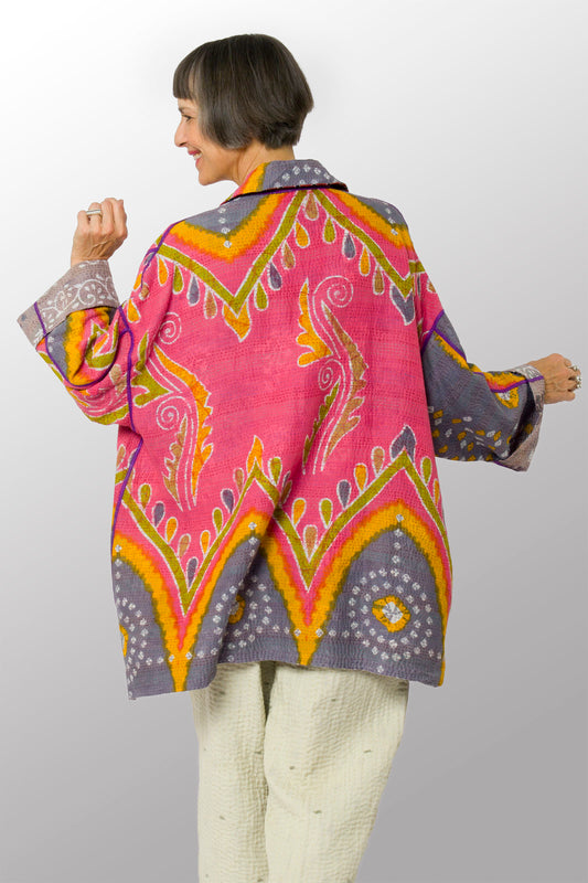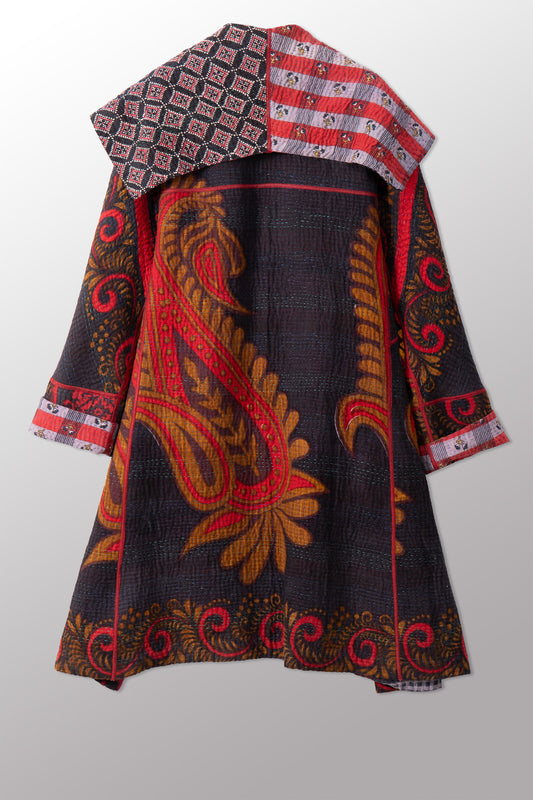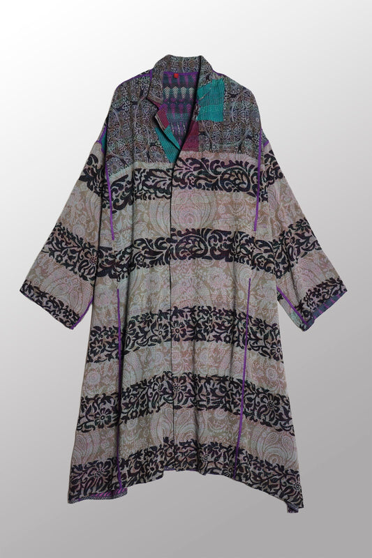 VINTAGE SILK KANTHA WRAP FLARE COAT - sv2330-0005a -
