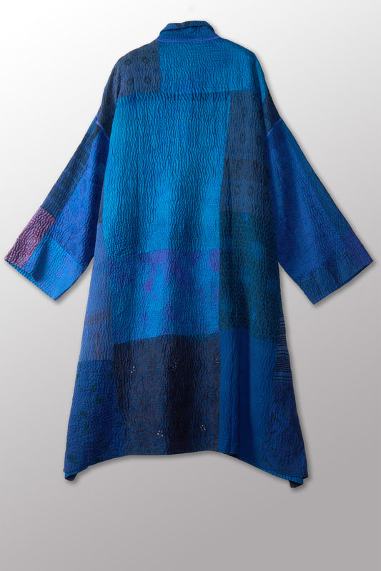 GEORGETTE JACQUARD VINTAGE SILK PATCH KANTHA NEW OVERSIZED COAT - gj4342-blu -