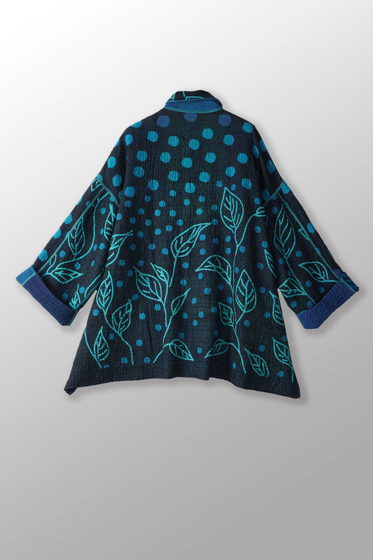 POLKA DOTS & LEAVES KANTHA OVERSIZED MINI COAT - dl4332-tuq -