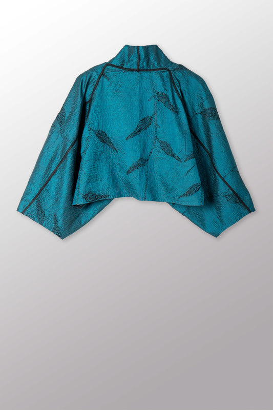 NIGHT BAMBOO SILK COTTON KANTHA PUFF SLV. SHRUG - nb2062-tel -