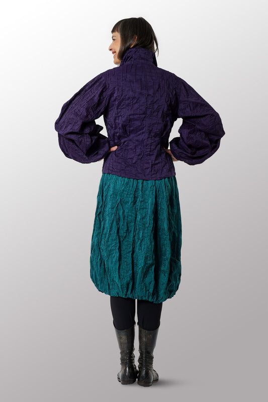 DYED COTTON SILK HEAVY VOILE RANDOM TUCK PUFF SLV. JACKET - dr1077-prp -