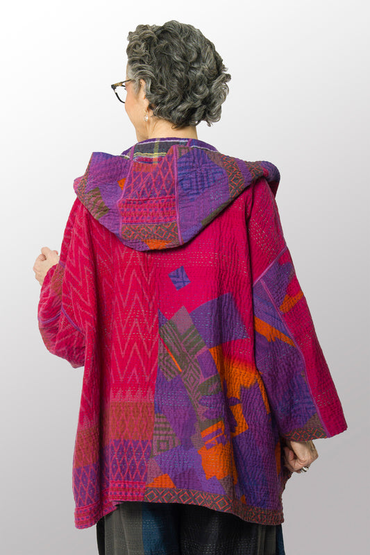 VINTAGE COTTON KANTHA HOODIE PONCHO - cv4064-0035a -