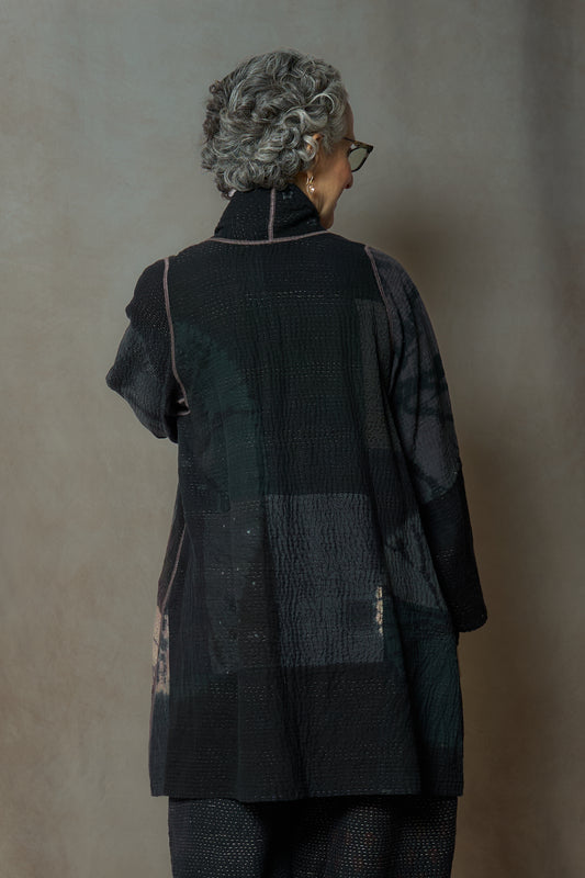 CIRCLE SHIBORI TIE DYE WOVEN PATCH KANTH A-LINE JACKET - tc4003-blk -