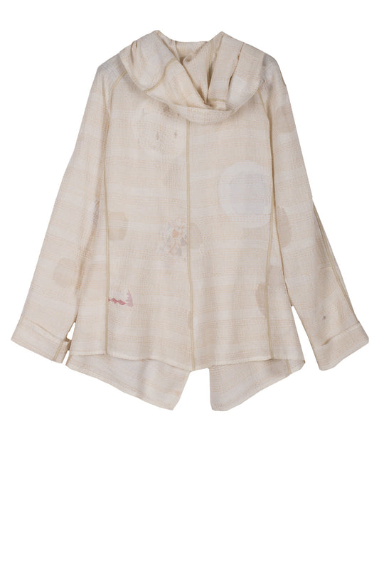 CUT THROUGH DOT AND HOLES KANTHA HOODED JACKET - cd2042-ivy -